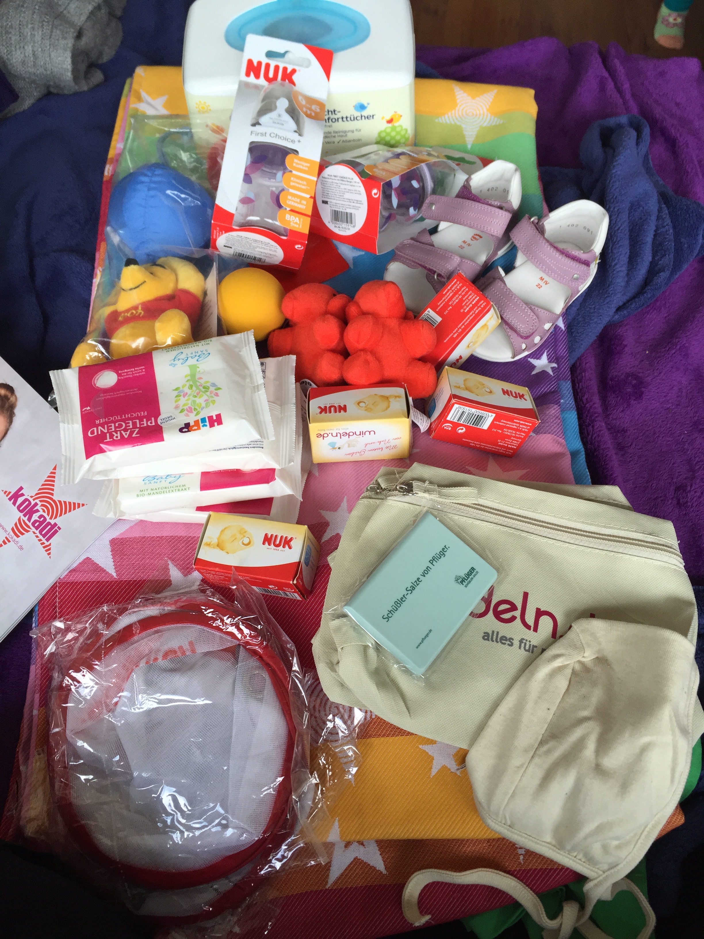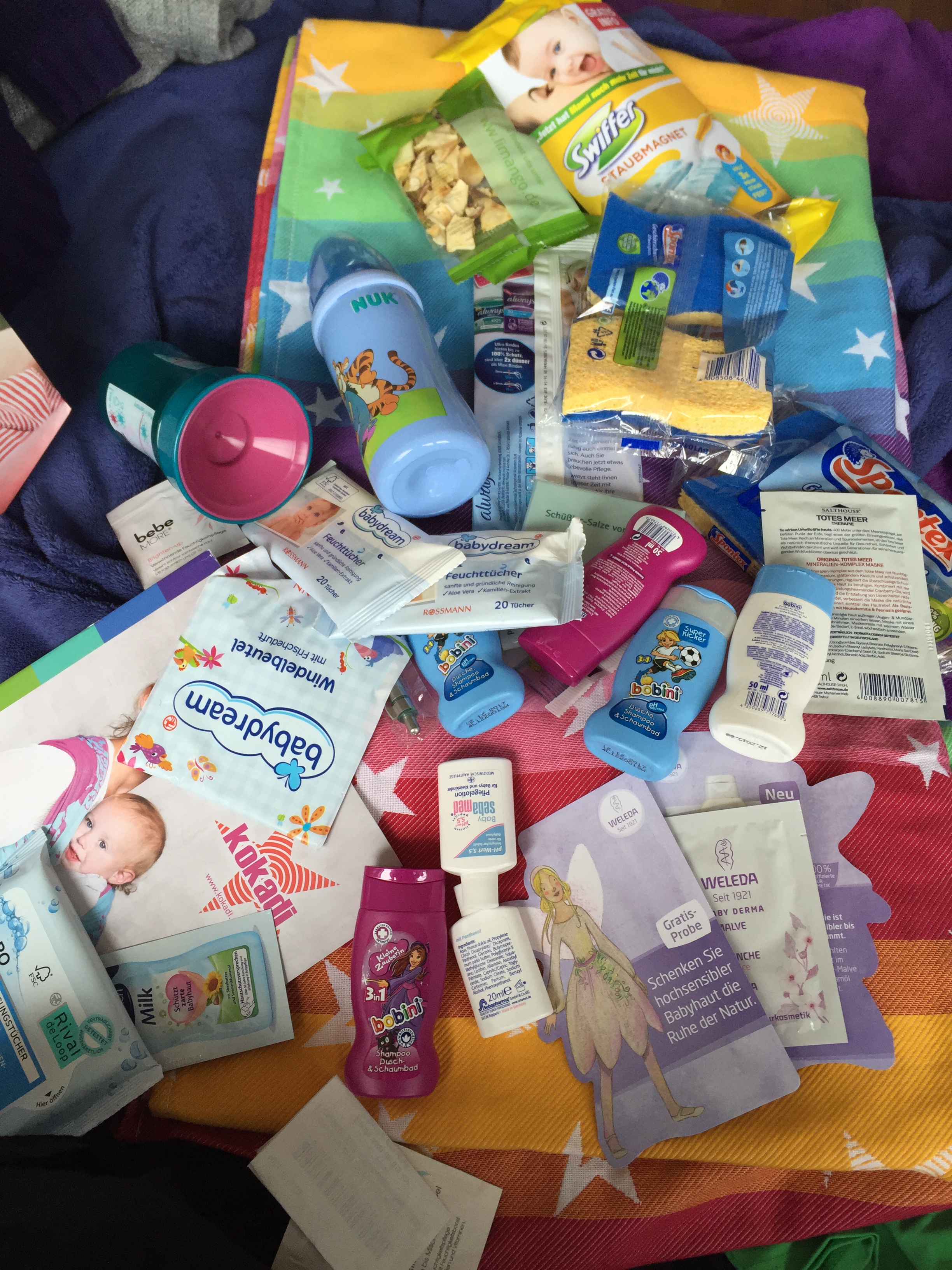 Auch in diesem Jahr wollte ich ganz unbedingt auf die Babymesse in Essen. Ich war seit dem ersten Mal da. Das erste Mal war ich mit meiner Großen schwanger und mit meiner Schwiegermama da. Es gab wirklich alles was das Herz begehrt. 3D Ultraschall (10-15 Frauen konnten einen gewinnen) wenn man Schwangerschaftvitamine kaufte, Hersteller von Folsäuretabletten für die Schwangerschaft bis hin zu namenhaften Babykostherstellern. Wir gingen eigentlich auch mit mehr Werbegeschenken als Gekauftem nach Hause. Im Jahr danach ging mein Mann mit und ich hatte unsere Babytochter in der Trage. Es war wirklich super. Auch da gingen wir mit vielen Geschenken nach Hause. Alleine meiner schwangeren Freundin brachten wir 13 Schnuller mit. Letztes Jahr dann, als ich schwanger mit Kind 2 war, gingen wir wieder hin. Dieses Mal mit den beiden Mädels. Schlecht war es eigentlich nicht. Ich hab mein Tragetuch bekommen und das zu einem unschlagbaren Messepreis. Auch Werbegeschenke gab es eine Menge. Was aber auffiel das einige namenhafte Größen auf der Messe fehlten. Bevor ihr jetzt denkt wir sind nur auf Werbegeschenke aus: Das ist natürlich Blödsinn! Aber ich fand es nett, als wir alleine für meine Wickeltasche 60 Euro bezahlten auch noch Rabatte fürs nächste Mal raussprangen oder mal ein Schnuller. Oder ganz cool: eine Wickelunterlage aus Kunststoff, als Täschchen faltbar mit Fach für eine Windel.